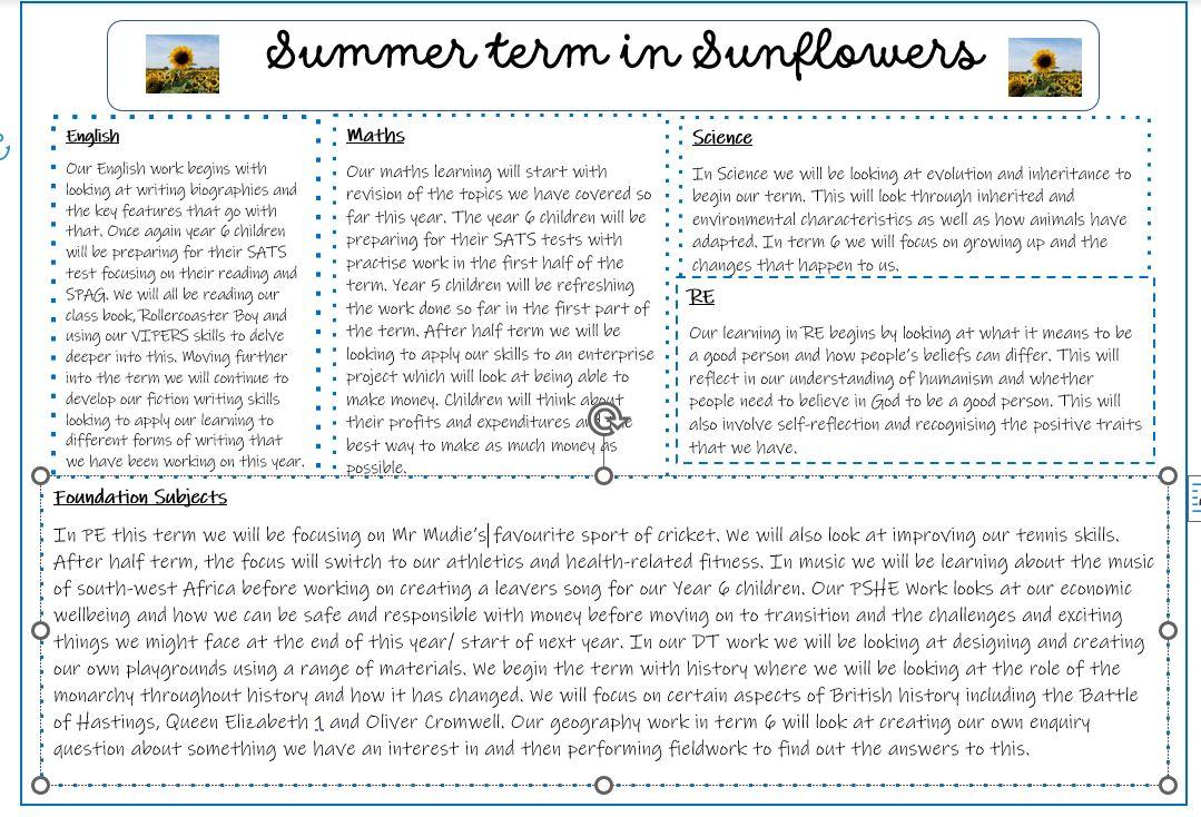 • Sunflowers - Years 5 & 6